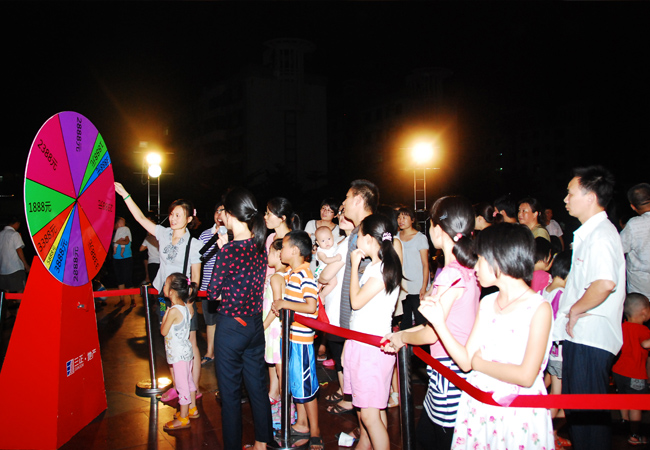 30分鐘后,搖獎活動開始。業(yè)主們排隊進入搖獎區(qū)。主持人介紹完活動規(guī)則之后,業(yè)主們紛紛按捺不住想要一試手氣。